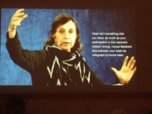 We found immediately that there was no difference in impact or transmission in teaching received by video. People immediately felt ‘present’ to the sessions, receiving teaching that catapulted all of us to depths of knowing and new recognitions. With Cynthia’s masterful gifts of teaching we were brought into the inner circle of the profundity of Luminous Love, brought face to face with the truth of our own hearts, and, in the next moment brought back into lightness, grace, and humor, just as Cynthia does in real life. Her tell tale red knit hat, reminded us that ‘nothing has changed’. Cynthia seemed ‘as real’ and present on video as she does in person.