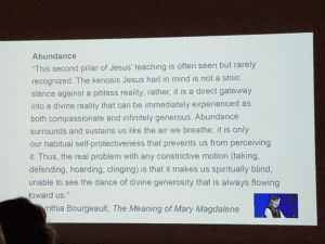 Then in fall of 2015, Cynthia Bourgeault held what became affectionately called, our first ‘Mega Wisdom School’ at Kanuga, NC. Part of the vision that Robbin Whittington had for the Kanuga Wisdom School was to video tape the teaching (and the entire wisdom school), in order for the Wisdom School teaching/experience to be offered for ‘many more interested others’. This Wisdom School at Moravian was part of the fruition of this vision, the ‘Maiden Voyage’ of utilizing the video coverage from Kanuga, as a teaching modality for another Wisdom School.