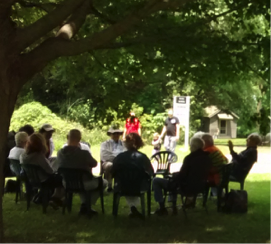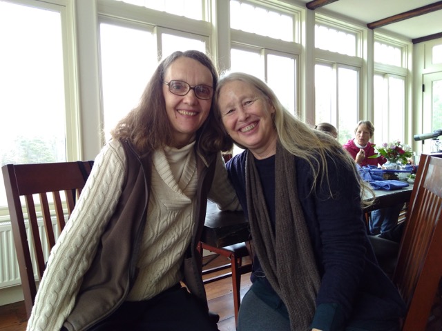 The group took care of the trees and gardens in conscious practical work, and each afternoon Marcelle led us into a direct relationship with the lives, practices and words of the early Quaker founders, who found through their deep connection to scripture, nature, and life, a trust in inner experience and the living Christ within that fanned the fires of divine love, grew “tender hearts,” and reveled in the divine exchange. Marcelle introduced Quaker exercises in discernment and tender heart sharing, offering practice time in dyads and small groups as a means to support one another as we “look within,” so central to both streams. Each afternoon for an hour those words were embodied by the group in the chants of Paulette Meier, who has taken those turns of phrase and set them to music, and whose powerful voice invited all to leap in without hesitation as we raised our voices and offered the passion of the early Quakers to the world in song.