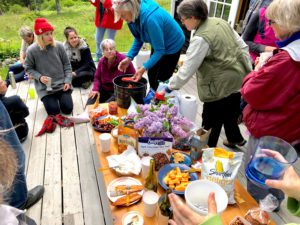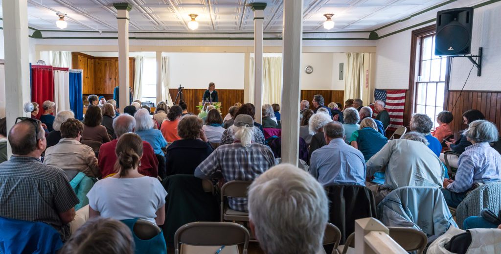 And there it is! Our daily focal point for the coming week, the Stonington Town Hall. More than a hundred of us settle into the second floor meeting room as we embrace the pace and flow of the week: early morning meditation, teaching, work time, communal lunch. Then an afternoon of teaching, meditation, and contemplative movement. For some of us, we are meeting Cynthia and the Northeast Wisdom community for the first time; for others it’s a welcome reunion.