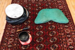 All quiet in the Stonington Town Hall. The hand drum, meditation cushion, and bowl bell reflect on a week of wonder, goodness, and truth. In readings, teachings, movements, the natural beauty of our surroundings, and the experience of our shared hearts, we returned positive energy to the source that has given us so much.