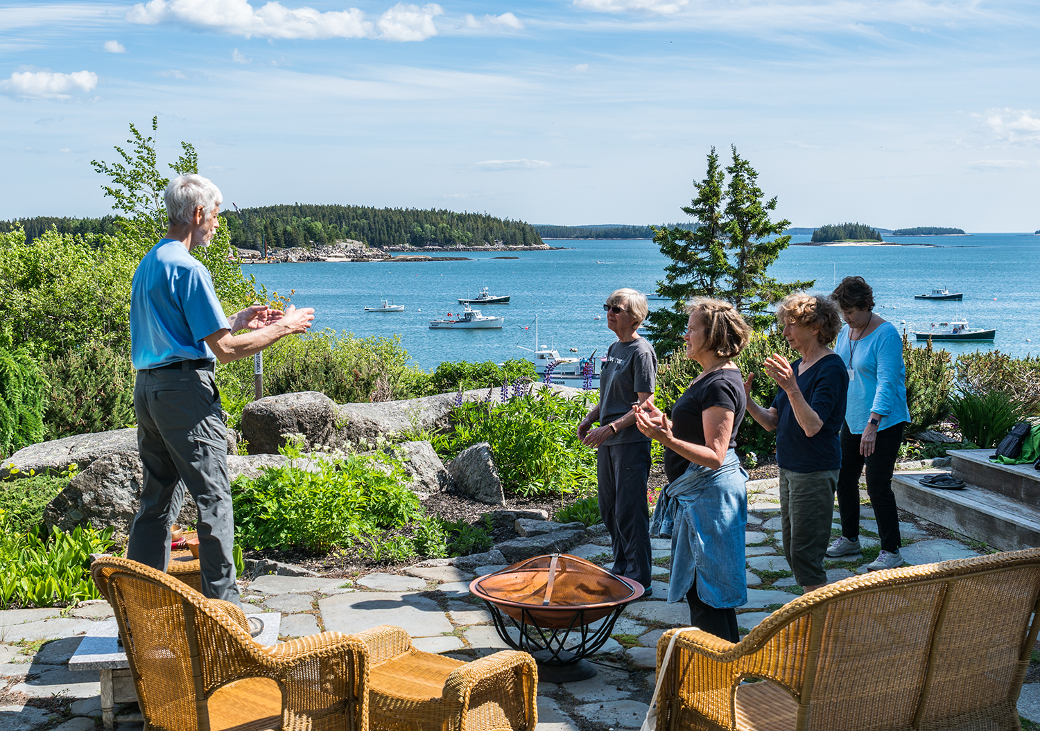 And there it is! Our daily focal point for the coming week, the Stonington Town Hall. More than a hundred of us settle into the second floor meeting room as we embrace the pace and flow of the week: early morning meditation, teaching, work time, communal lunch. Then an afternoon of teaching, meditation, and contemplative movement. For some of us, we are meeting Cynthia and the Northeast Wisdom community for the first time; for others it’s a welcome reunion.