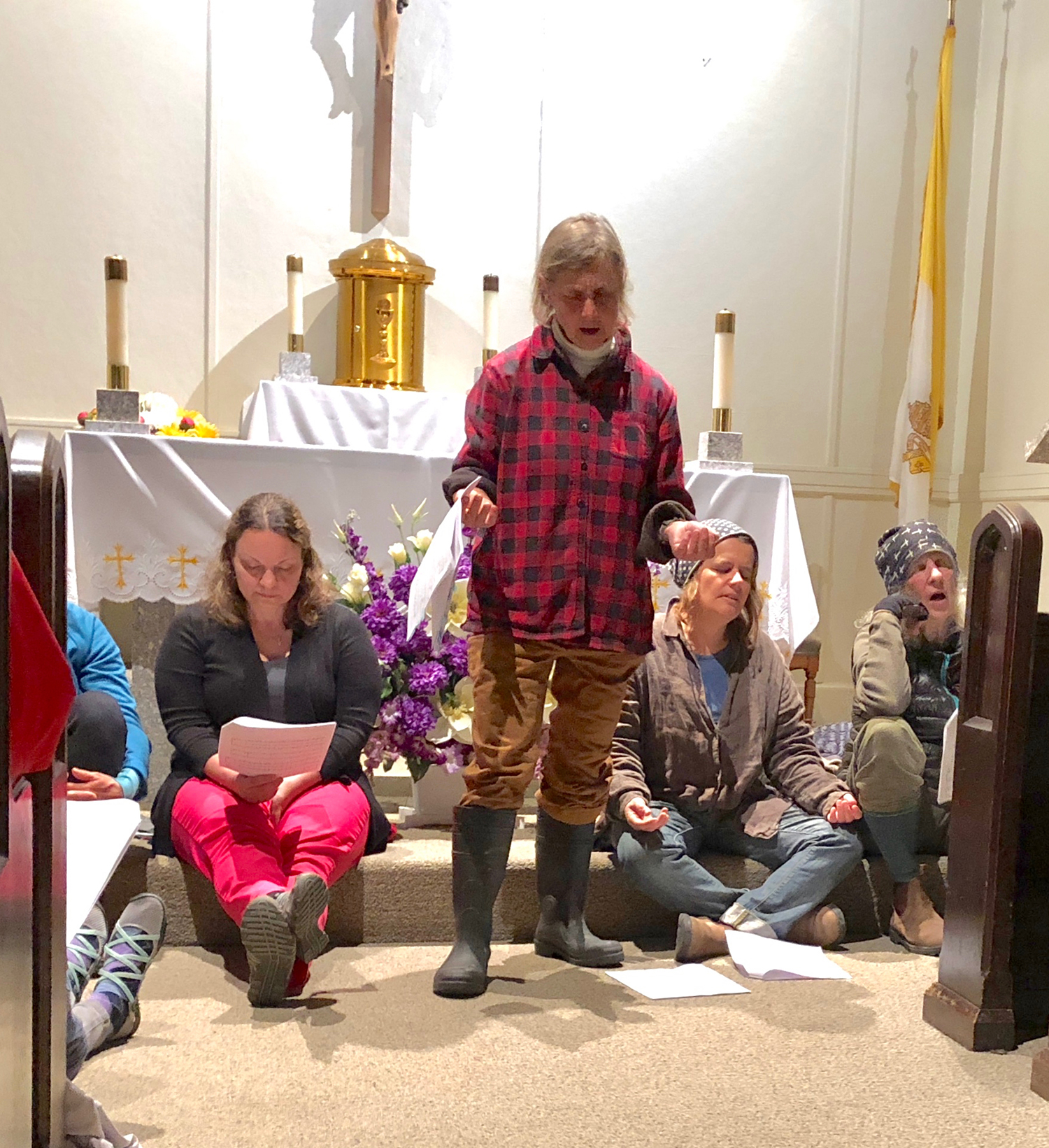 All quiet in the Stonington Town Hall. The hand drum, meditation cushion, and bowl bell reflect on a week of wonder, goodness, and truth. In readings, teachings, movements, the natural beauty of our surroundings, and the experience of our shared hearts, we returned positive energy to the source that has given us so much.