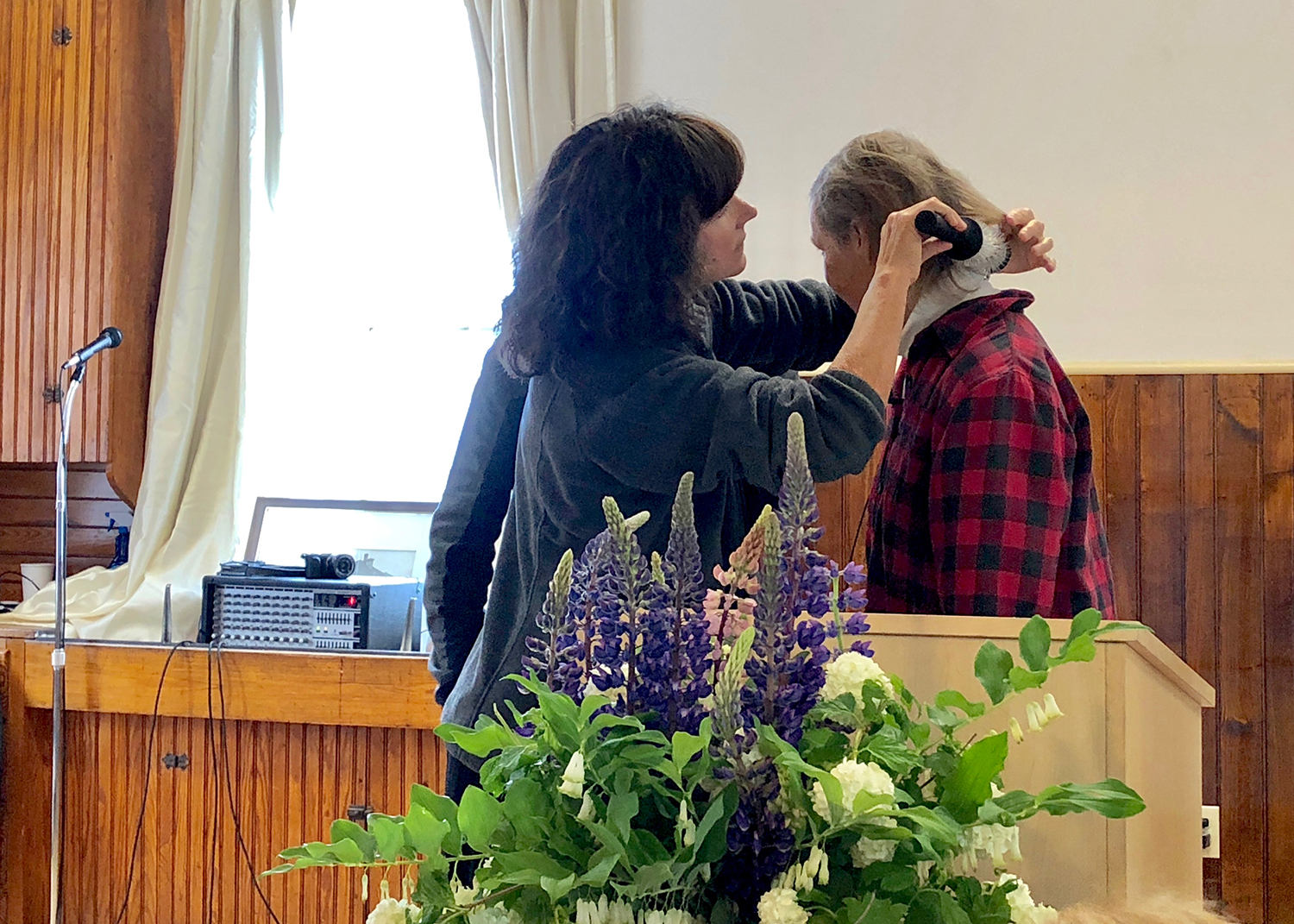The Wisdom week included daily work periods followed by lunch at the Stonington Odd Fellows Hall.