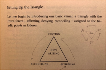“Just as it takes three independent strands of hair to make a braid, so it takes three individual lines of force to make a new arising. Until this third force enters, the other two forces remain at impasse. These three lines of action are free of moral judgment and they are neither “good” or “bad” (Bourgeault, 2013, p. 26).