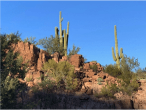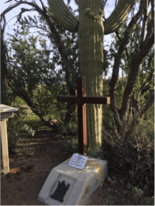 Today we return to the desert. The place calling me is the place I fell prostrate. I hear a voice inside me say, “That’s not very far out into the desert, shouldn’t I go somewhere further out, more isolated, dirtier?” Another voice, “Ah. Doubt. That is the place that keeps calling and so you can trust.” I let go of the perceptions of others. I return to the spot in the center of the beginning and the end of the stations of the cross. I take a seat on the bricks. I take it in, the desert, the sights and sounds and temperatures. I say hello to the Saguaro cactus beside me and others surrounding. Then I close my eyes. At first there is a sense of the beginning and the end of my life. Born a little bodhisattva, my parents carrying ancestral wounds but they loved and they still love me, so deeply, so fully in their own beings. I have tears run down my face and I see myself as a little old lady with many scars but nothing is missing. I leave the world a little bodhisattva. It is my work to do.