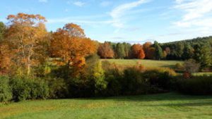 I look out at rolling hills with trees holding leaves of fire. It’s autumn, and the heart of fall colors shine forth at Hallelujah Farm in New Hampshire. With leaves of yellow, orange and red—the field looks to be on fire with life.