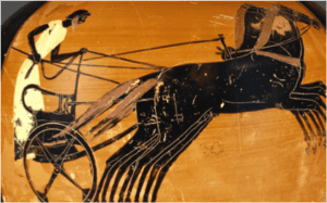 Images from the top: Saint Theresa’s Interior Castle, author unknown, courtesy of Integrated Catholic Life; Pahari painting of Golden cosmic egg Hiranyagarbha by Manaku, c. 1740, courtesy of wikipedia; Charioteeer of Delphi, cropped, image author Юкатан, courtesy of wikimedia commons; Attic Panathenaic amphora, Kleophrades Painter, 490-480 B.C, public domain.