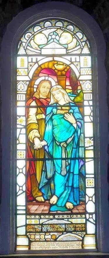 Image: Stained glass window in Kilmore Church, Isle of Mull, by artist Stephen Adam. It is believed to be Mary Magdalene and Jesus, inscribed “Mary hath chosen that good part, which shall not be taken away from her.” Gospel of Luke ch10.v42