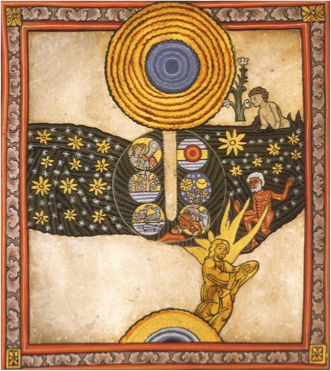 Cover of The Corner of Fourth and NondualImages are all paintings by Hildegard de Bingen from her manuscript Scivias, and can be found in Matthew Fox’s Illuminations of Hildegard of Bingen. You can order the book from Amazon here.