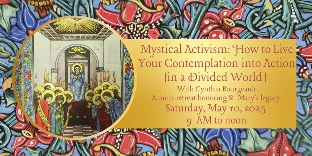 Join St Mary’s at Penn and Cynthia Bourgeault for this in-person and live-streamed event on loving God and our neighbor with radical obedience.