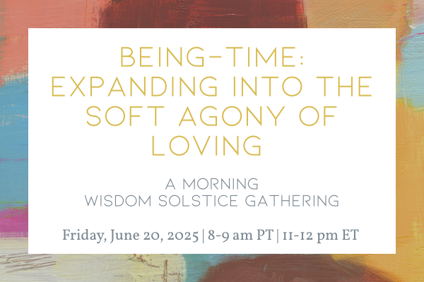 Together we will explore “being-time,” the vast aliveness that is always available to us, no matter our circumstance. Through silence, embodiment, reflection and centering prayer we will touch into themes of grief, broken-heartedness and our co-entanglement with a world that aches. Guided by the luminescence of the longest day- you’re invited to rest in Divine Love as you return again and again to the soft agony of loving.
